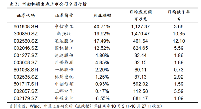 6.1. 河南机械上市公司行情回顾