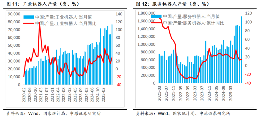 【9月工业机器人产量76287台,同比增长28.3%】。国家统计局公布数据显示,2025年9月,我国工业机器人产量76287台,同比增加28.3%,1-9月工业机器人总产量为594816台,同比增长29.8%。(数据来源:国家统计局)