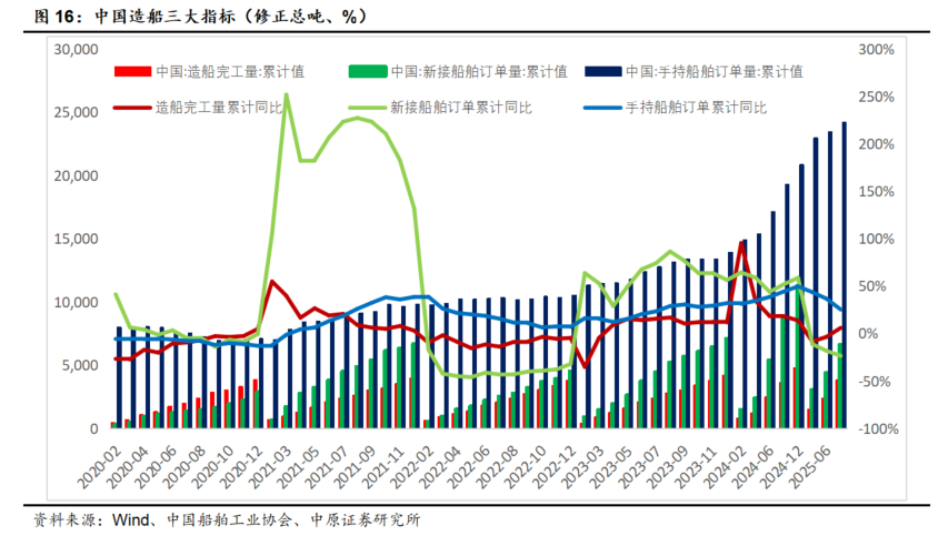 造船三大指标:前三季度造船完工量同比增长6%,新接订单量同比下降23.5%,手持订单量同比增长25.3%
