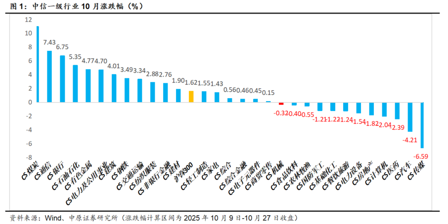 10月市场继续上行趋势,机械板块科创成长子行业普遍出现调整,受益深地科技等题材影响,传统的矿山冶金机械、油气设备板块获得市场关注。我们建议配置内需为主,基本面向好,盈利稳定,分红和股息率较高的工程机械、高铁设备、矿山冶金设备龙头。市场情绪较好风险偏好有明显提升,利好科创成长板块投资。前期调整的人形机器人、AIDC配套设备、半导体设备等主题有望逐步提振。