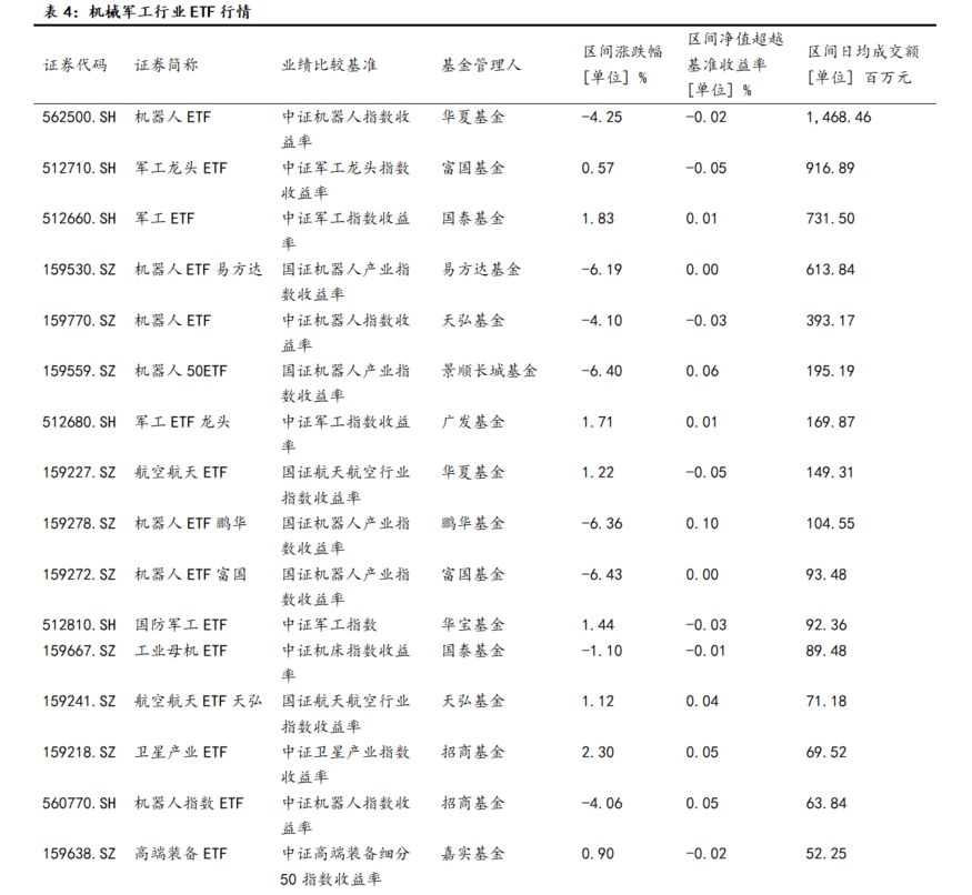 7.2. 机械军工行业ETF行情回顾