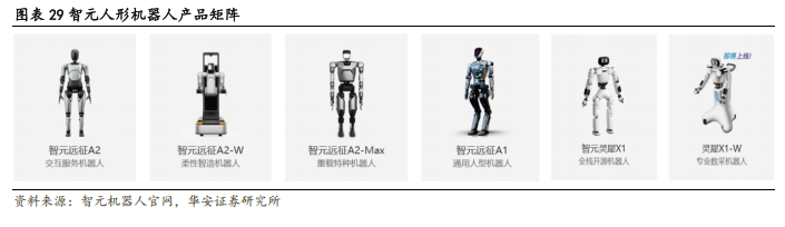 截至 2025 年 8 月,智元机器人已形成六大产品线,覆盖人形、轮式、四足、灵巧手、重载平台。并进入规模化量产与商用落地阶段。从智元机器人京东自营旗舰店看,目前已上架的产品包括远征 A2 系列、灵犀 X2 系列、精灵 G1、四足机器人 D1系列、OmniHand 灵巧手系列、绝尘 C5 等多款系列产品,价格区间为 1.48 万元至 45万元。
