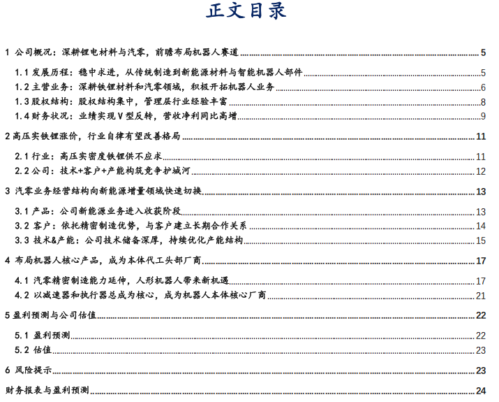 深耕锂电材料与汽零,前瞻布局机器人赛道