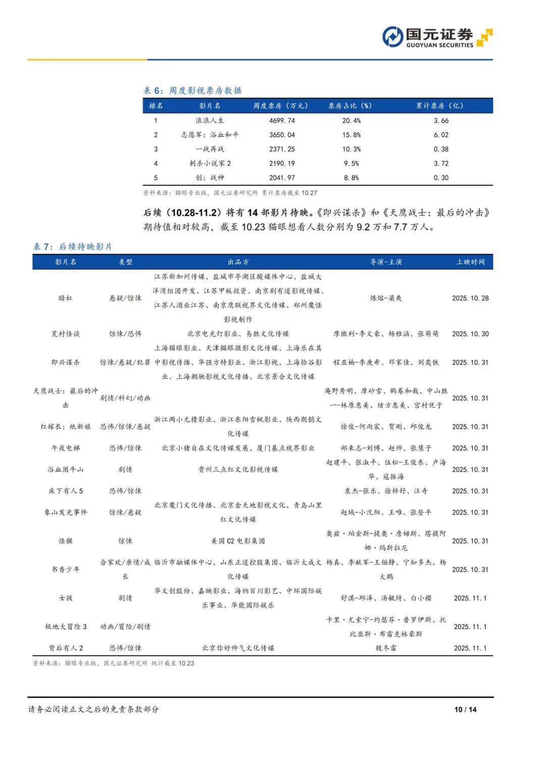 影视:周度(10.18-10.24)总票房2.30亿元,票房冠军为《浪浪人生》,周票房4700万元,占比周度票房20.4%,后续(10.28-11.2)将有14部影片待映。短剧方面,AI赋能,漫剧成为短剧行业内现象级细分赛道,巨量引擎数据显示,2025年上半年漫剧已形成供需双轮驱动的爆发态势:4-7月间,剧目供给量以83%的复合增长率持续扩容,播放量与点赞量更是分别实现92%、105%的复合增长,市场规模预计有望将突破200亿量级。