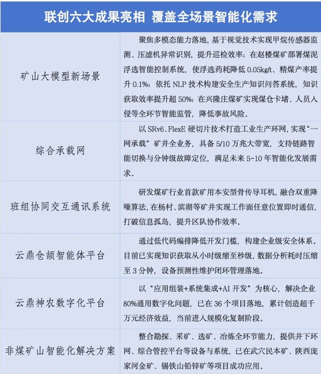 发布会上,双方重点推出六大创新成果,全面覆盖矿山生产、网络支撑、协同管理、平台赋能及非煤矿山领域。
