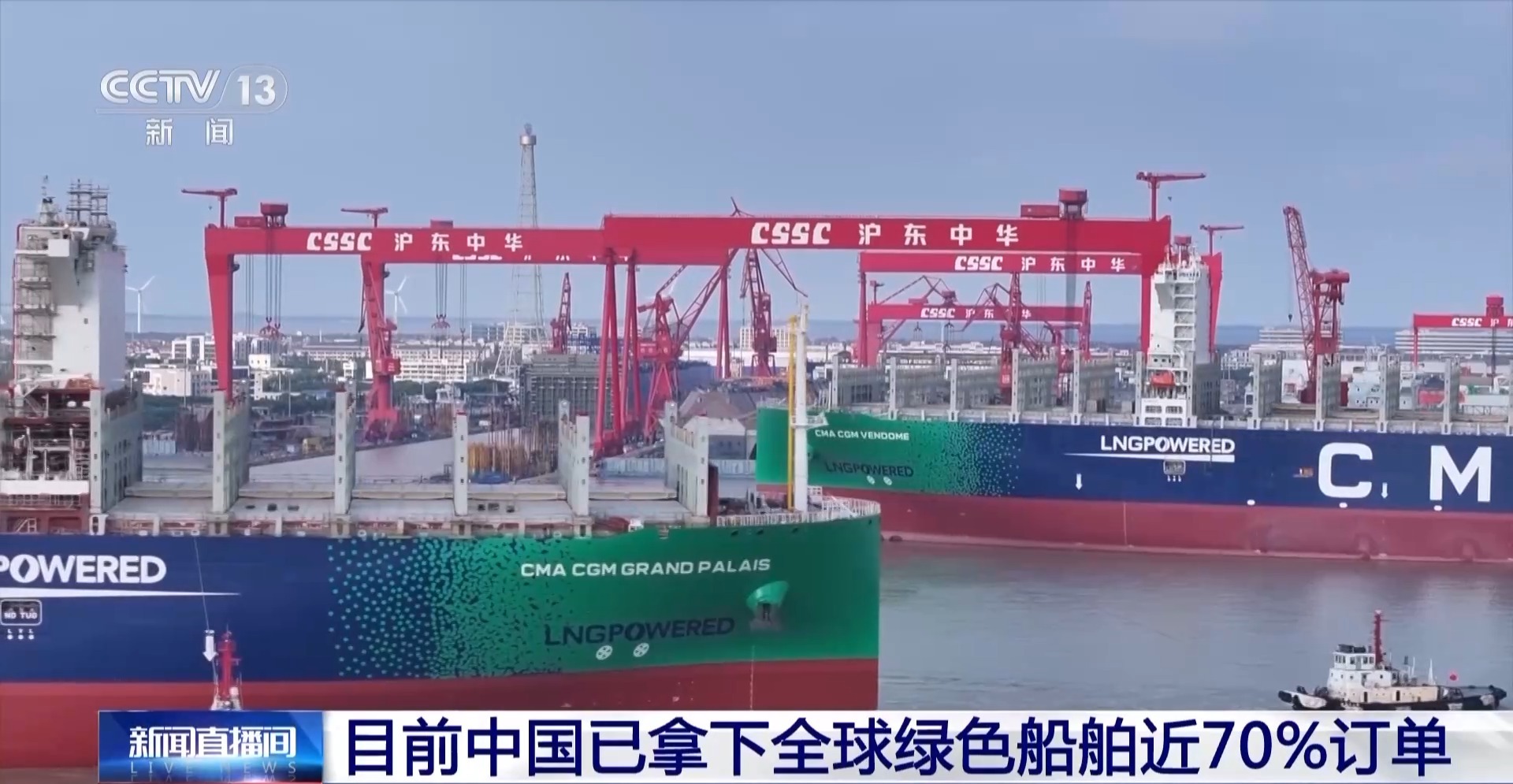 在中船沪东中华造船厂,记者看到,今年这家船企接到的绿色船舶订单占比已经超过80%,是近5年最高水平。船型覆盖集装箱船、LNG运输船等主力船型,燃料也从液化天然气拓展到了甲醇、液氢等,高端化、绿色化已经成为中国造船的新名片。