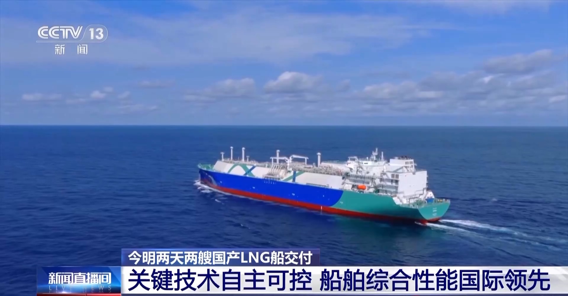 今天和明天交付的这两艘LNG大型运输船,是我国自主研制的第五代LNG大型运输船,集全球最新设计理念、最优技术装备和最强环保性能于一身,不仅实现了关键技术自主可控,提升了设备的国产化率,还大幅提高了船舶综合性能指标,总体技术达到了国际领先水平,一次满载运输的液化天然气可供上海市居民使用半个月。