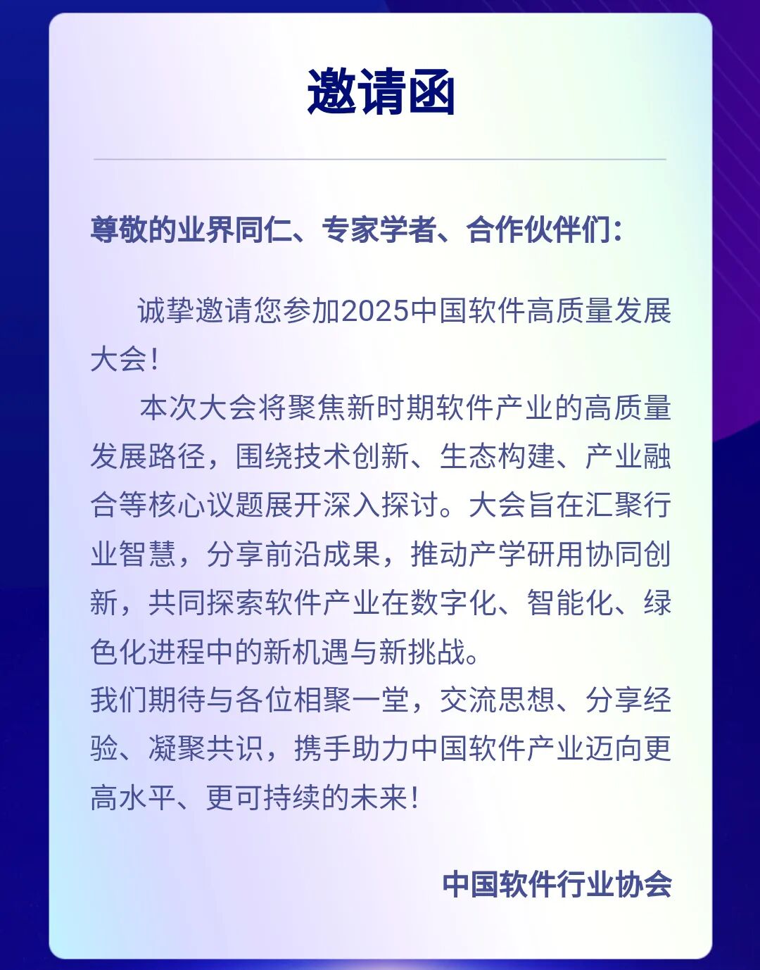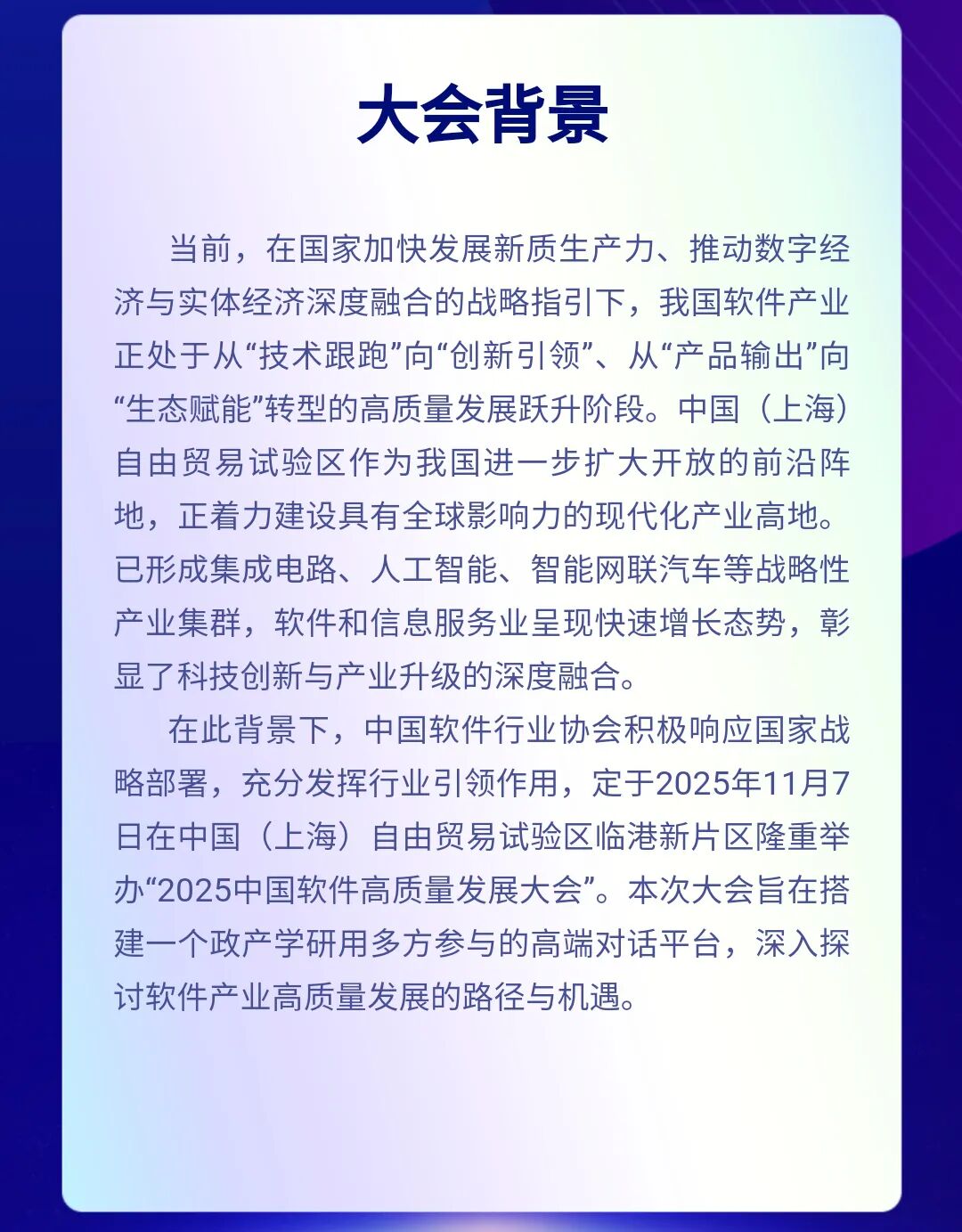 软件行业年度盛典,2025中国软件高质量发展大会即将在沪召开