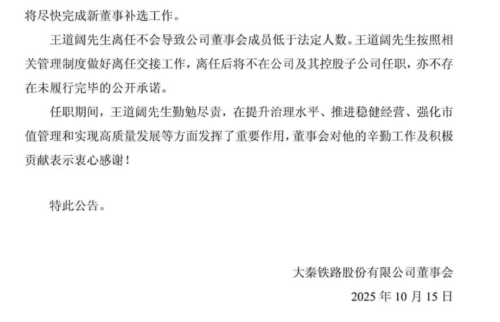 根据安徽省投资集团控股有限公司文件《关于李珺等同志职务任免的通知》(皖投人〔2025〕199号),经研究决定推荐李珺同志为安徽省铁路发展基金股份有限公司董事长人选;免去李强同志安徽省铁路发展基金股份有限公司董事长、董事职务。