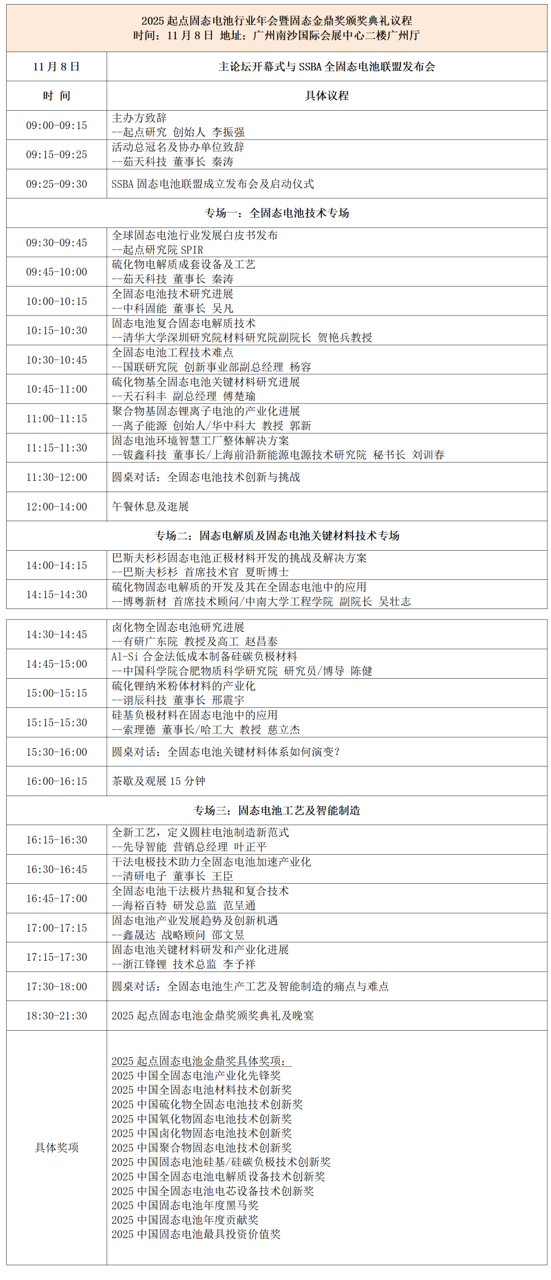 主办单位:起点固态电池、起点锂电、SSBA全固态电池联盟