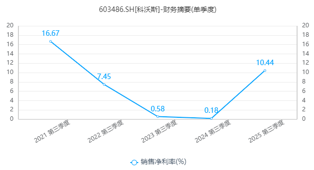 公司2025年第三季度销售净利率为10.44%,相较于去年同期的0.18%,得到了大幅提升。