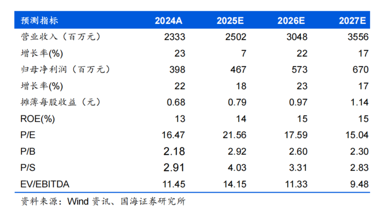 预计公司2025-2027年营业收入分别为25.02、30.48、35.56亿元,归母净利润分别为4.67、5.73、6.70亿元,对应PE分别21.56、17.59、15.04倍,公司是目前国内生产规模较大、品种较全、科技含量较高的特种表面活性剂龙头企业,第三工厂开眉客积极推进,看好公司成长性,维持“买入”评级。