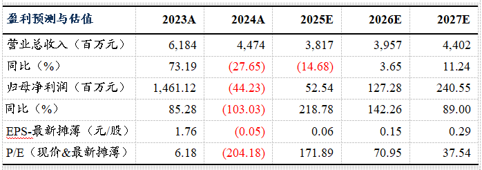 我们维持公司2025-2027年归母净利润预测分别为0.53/1.27/2.41亿元,当前市值对应动态PE 分别为172/71/38倍,维持“买入”评级。