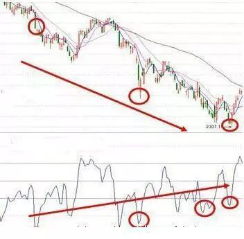 2、底背离。CCI的底背离一般是出现在远离﹣100线以下的低位区。当K线图上的股价一路下跌,形成一波比一波低的走势,而CCI曲线在低位却率先止跌企稳,并形成一底比一底高的走势,这就是底背离。底背离现象一般预示着股价短期内可能将反弹,是短期买入的信号。