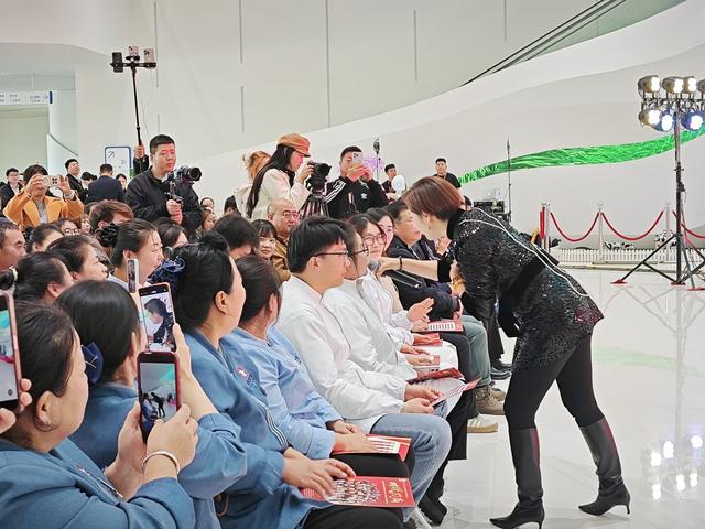 苏勒亚其其格与现场观众互动。