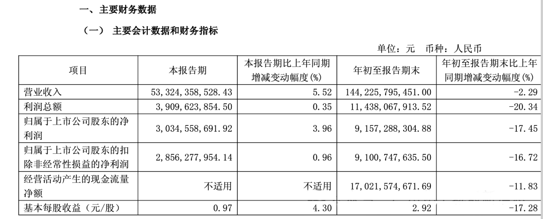 现金流方面,前三季度经营活动产生的现金流量净额170.22亿元,同比下降11.83%;投资活动现金流量净额为-249.18亿元;筹资活动现金流量净额186.91亿元,同比有所减少。
