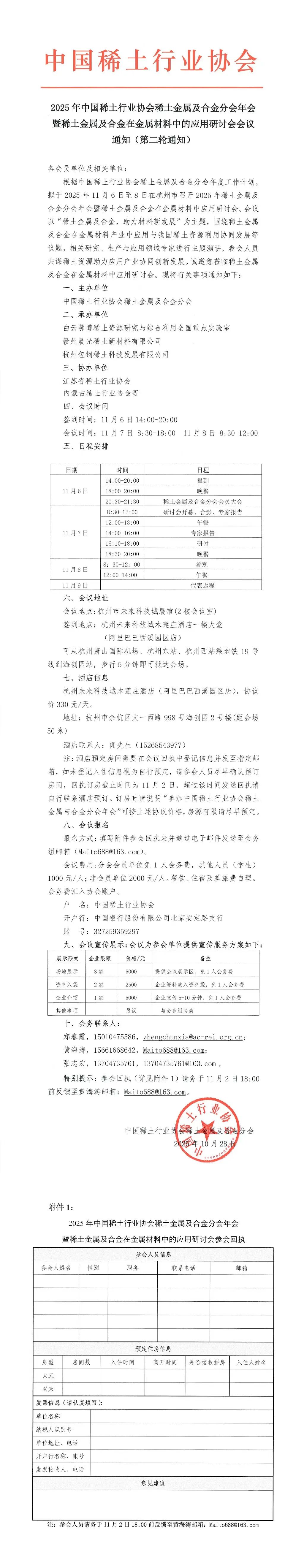 2025年中国稀土行业协会稀土金属及合金分会年会暨稀土金属及合金在金属材料中的应用研讨会会议通知(第二轮通知)