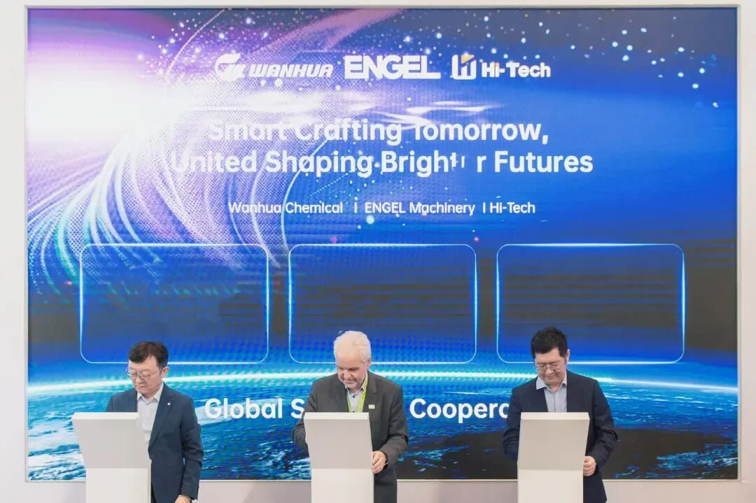 2025年10月10日,在德国K展现场,万华化学、ENGEL及海泰科股份有限公司三方共同签署战略合作协议。万华化学集团常务副总裁华卫琦,ENGEL亚洲及大洋洲总裁Gero Willmeroth先生,海泰科股份有限公司董事长孙文强等三方高层领导共同出席见证。