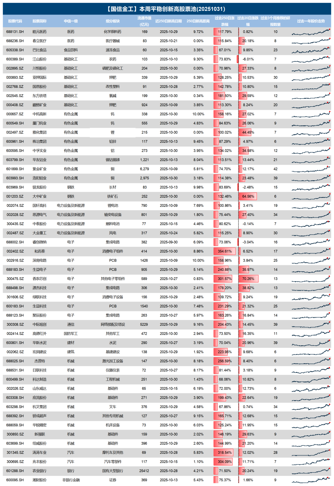 注:本文选自国信证券于2025年10月31日发布的研究报告《由创新高个股看市场投资热点(第217期)》
