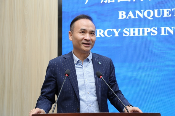 广船国际董事、总经理周旭辉在“非洲仁爱II”号的钢板切割仪式上致辞广船国际董事、总经理周旭辉在仪式上致辞称:“Mercy Ships自1978年成立以来,近五十载如一日,以海洋为桥,将顶尖医疗无偿送达最需要的地区,用实际行动诠释‘医者仁心、大爱无疆’。”