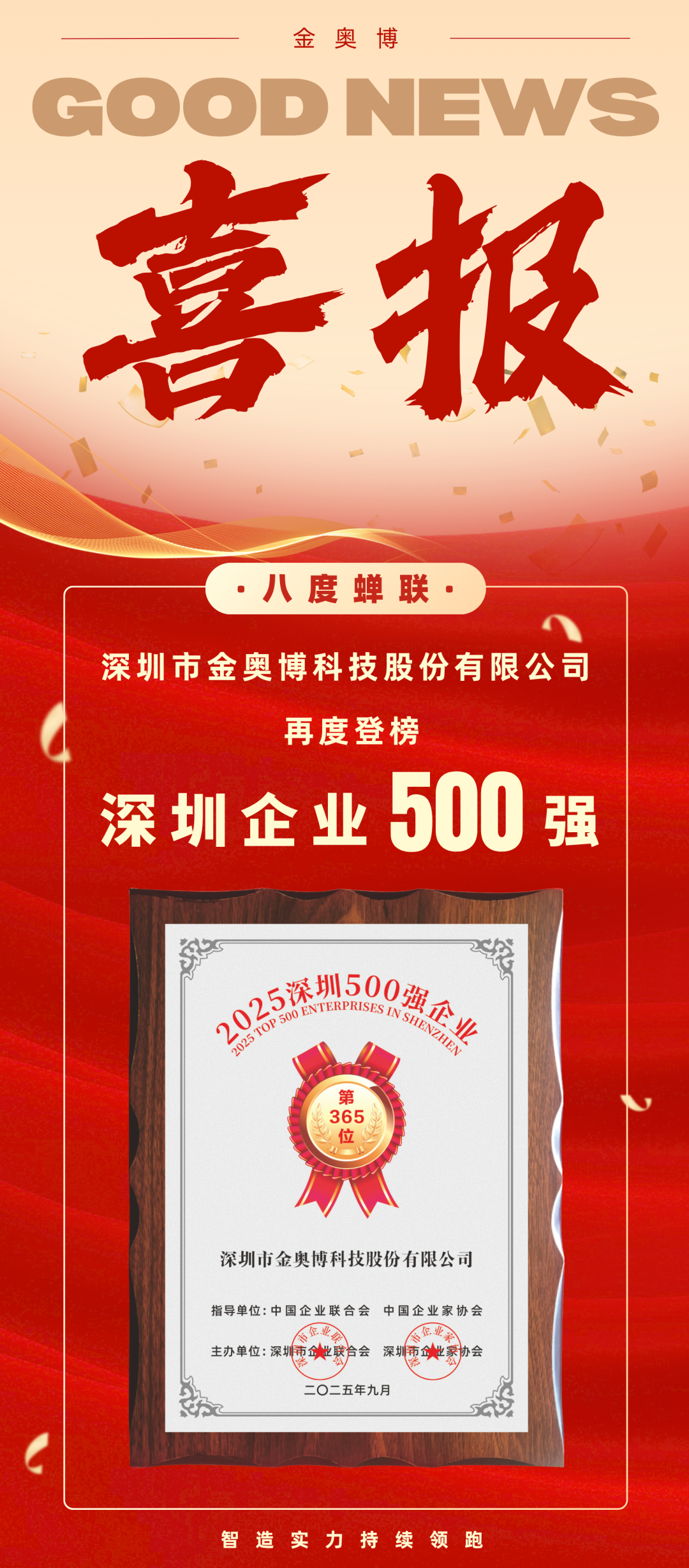 “深圳企业500强”榜单自2018年首次发布至今已历经八载。这八年,金奥博与深圳同频发展,深度融入大湾区创新驱动与行业转型升级进程。此次蝉联,是业内对金奥博过去一年砥砺前行、开拓进取的充分肯定,也为公司的未来发展注入更强的信心与动力。站在新的起点,金奥博将继续以科技创新为核心,深化产业链整合,以更硬核的技术实力与经营效能,为深圳建设具有全球影响力的科技和产业创新高地贡献更多力量。