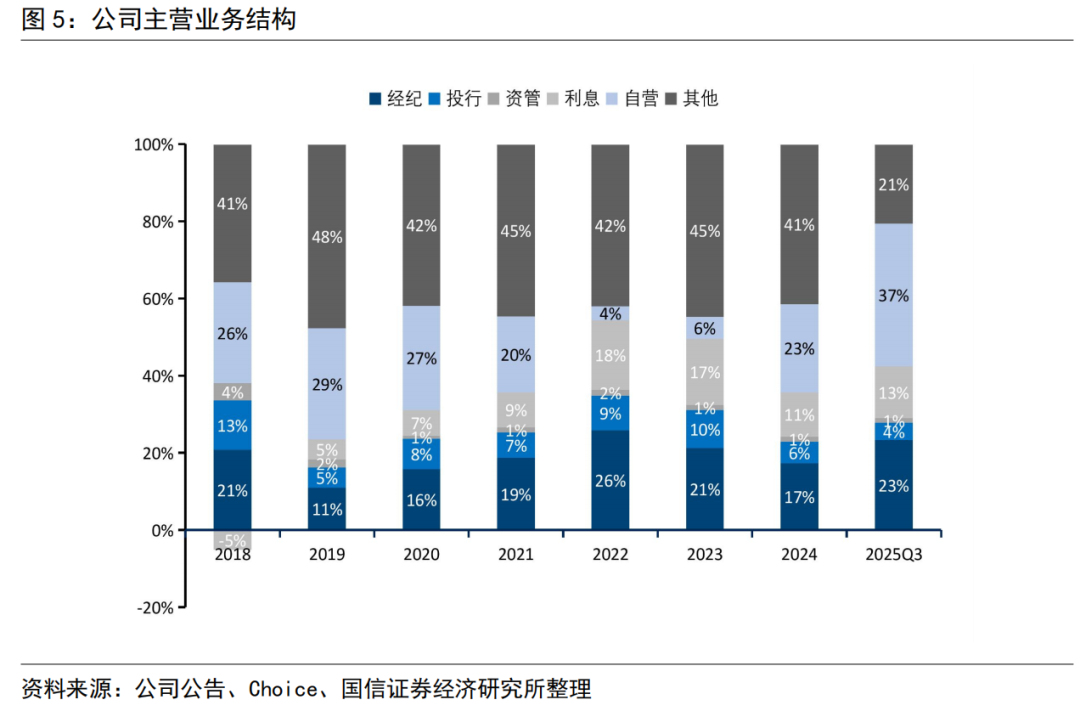 2025年前三季度,资本市场交投活跃度提升,经纪业务收入21.61亿元,同比上涨64.71%。2025年前三季度,公司投资规模稳健提升,金融资产规模同比增长11.48%至1,598.63亿元,实现投资业务收入(含公允价值变动)34.28亿元,同比提升58.91%,主因交易性金融工具投资收益同比增加。