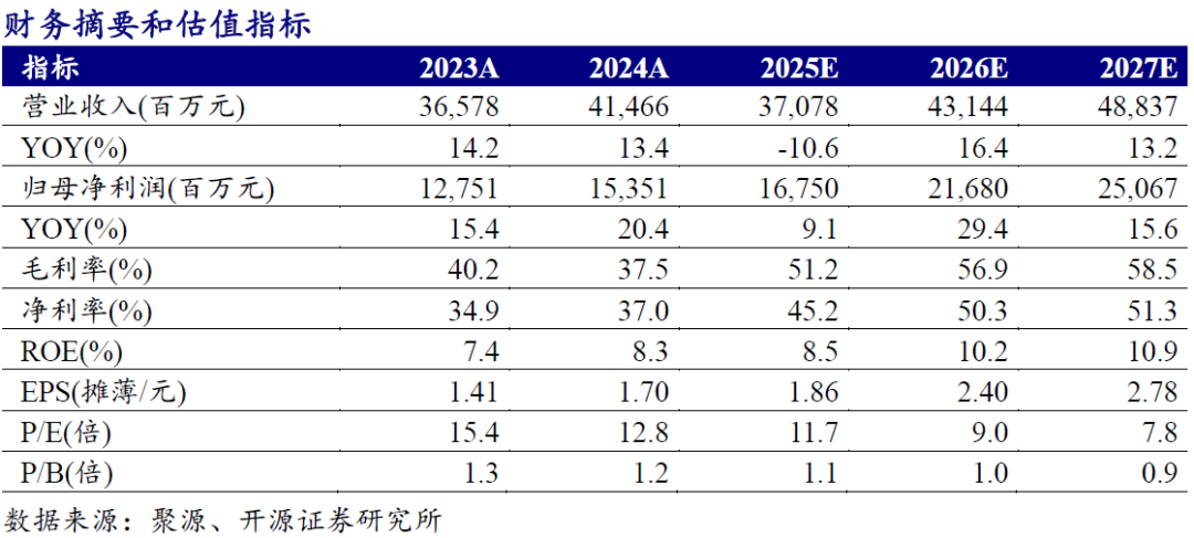 预计2025-2027年公司归母净利润168/217/251亿元,同比+9%/+29%/+16%(对应2025年扣非归母净利润同比+85%),对应PE为11.7/9.0/7.8倍,当前PB(LF)1.14倍,公司业务综合实力强,AI涨乐APP上线引领行业,维持“买入”评级。