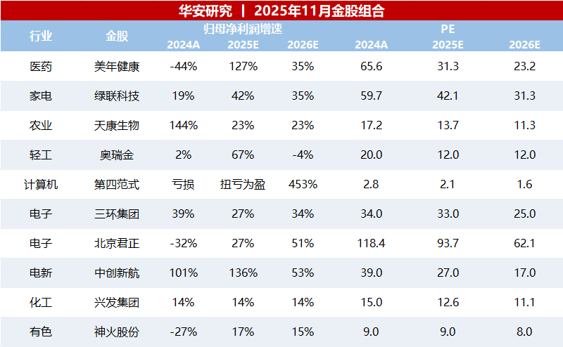 本文内容节选自华安证券研究所已发布报告:《【华安证券·策略研究】月度报告:华安研究 | 2025年11月金股》(发布时间:202501031)),具体分析内容及风险提示请详见报告。若因对报告的摘编等产生歧义,应以报告发布当日的完整内容为准。