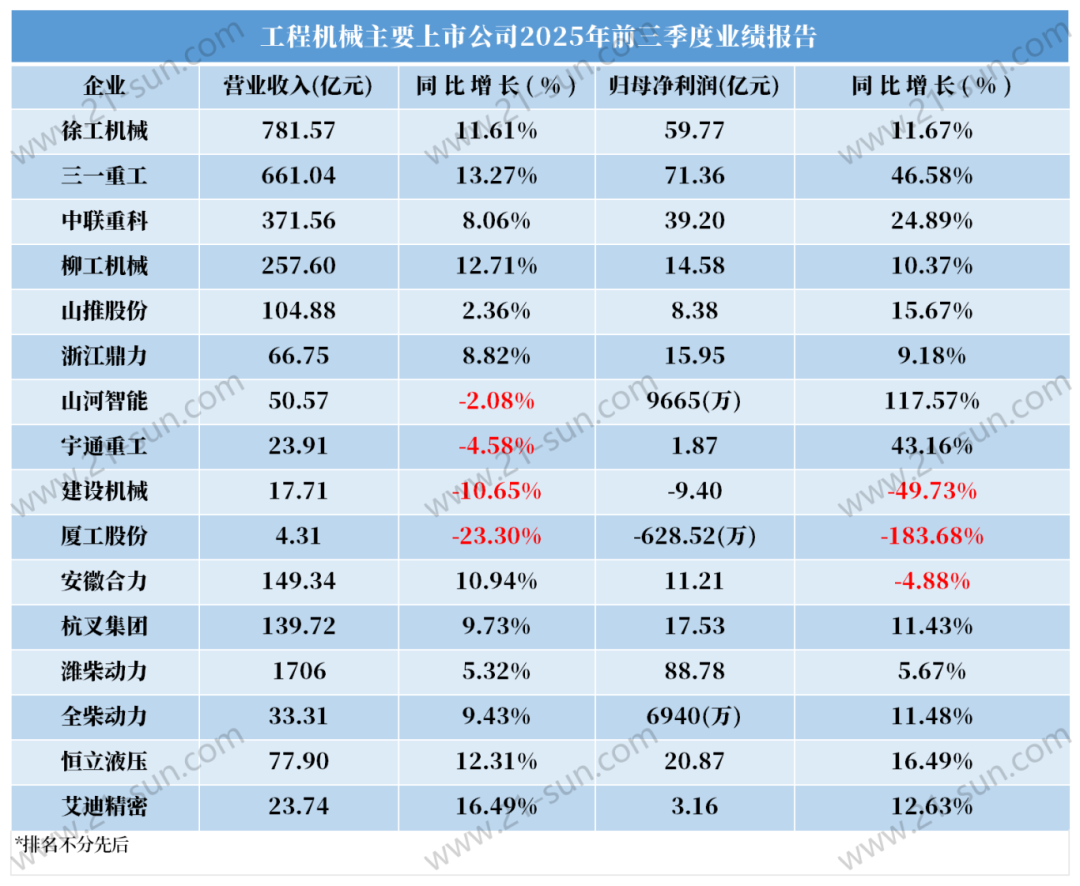 柳工机械、山推股份、浙江鼎力、潍柴动力、恒立液压、杭叉集团等企业也实现了营收与利润的双增,展现出在细分领域的竞争优势和较强的经营韧性。