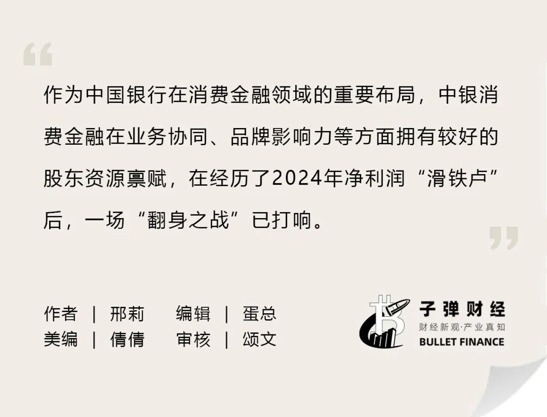 综合来看,作为中国银行在消费金融领域的重要布局,中银消费金融在业务协同、品牌影响力等方面拥有较好的股东资源禀赋,在经历了2024年净利润“滑铁卢”后,一场“翻身之战”已打响。