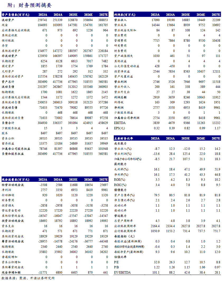 2025前三季度公司营业总收入/归母净利润为127.1/51.1亿元,同比+39%/+55%,单Q3营业收入/净利润为47.1/16.5亿元,同比+40%/+38%,低于我们预期。前三季度年化加权ROE 8.47%,同比+2.92pct,期末杠杆率(扣客户保证金)3.86倍,同比+0.45倍。前三季度经纪/投行/资管/利息净收入/投资(含公允价值变动损益)同比+49%/+41%/-4%/-15%/+53%,经纪、投行、投资驱动业绩增长。我们调整市场假设,下修2025年、上修2026、2027年盈利预测,预计2025-2027年归母净利润70/84/100亿元(74/81/96),同比+108%/+21%/+18%。当前股价对应2025-2027年PB 1.15/1.06/0.97倍。新管理层上任后公司积极发展,自营投资收益同比高增,财富管理与大资管业务线有望复苏,维持“买入”评级。
