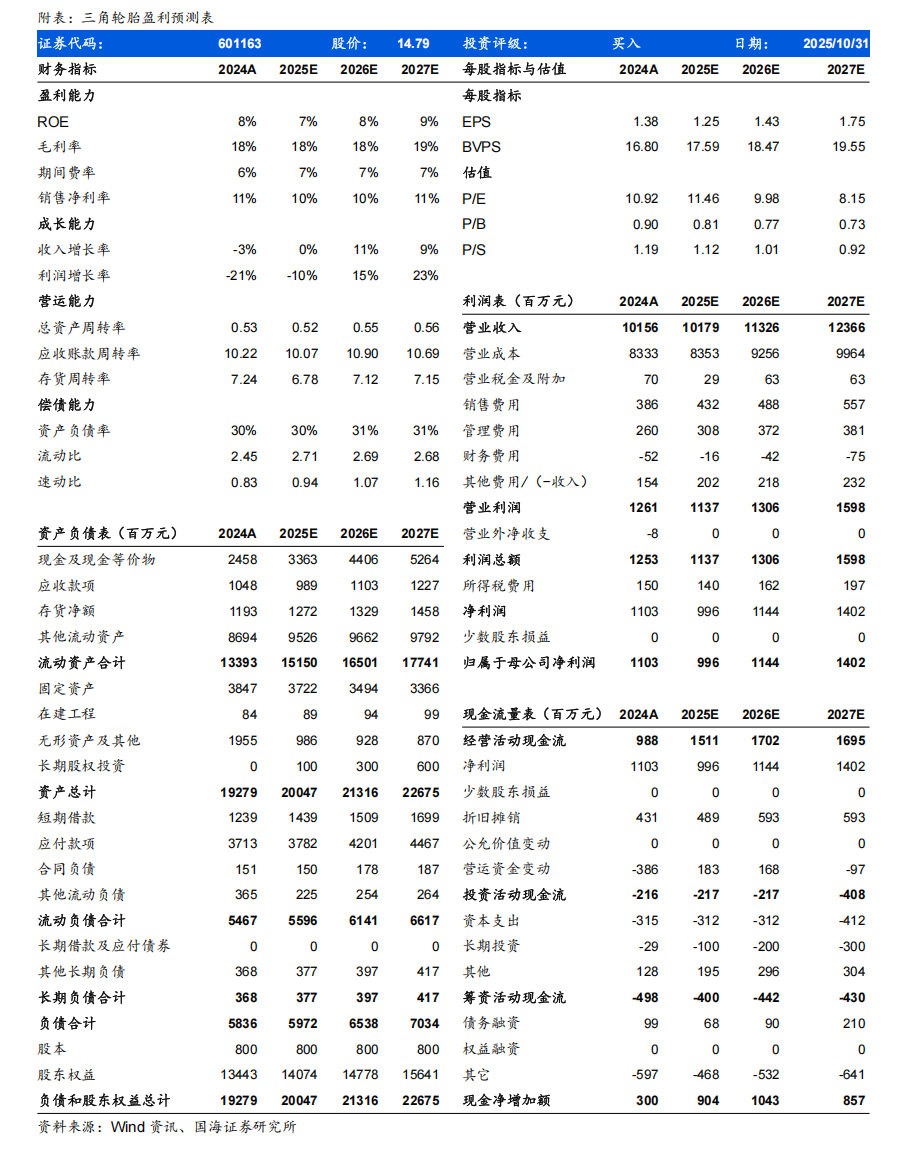 国海证券研究报告《三角轮胎2025年三季报点评:深耕细分市场领域产品性能,2025Q3单季度归母净利润环比改善》