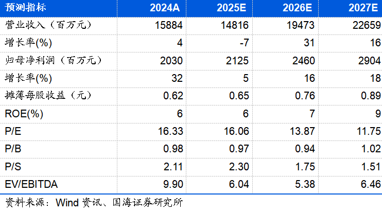结合2025年前三季度的业绩表现,我们调整了公司的盈利预期,预计公司2025-2027年营业收入分别为148.16、194.73、226.59亿元,归母净利润分别为21.25、24.60、29.04亿元,对应PE分别16、14、12倍,考虑公司的龙头地位,维持“买入”评级。