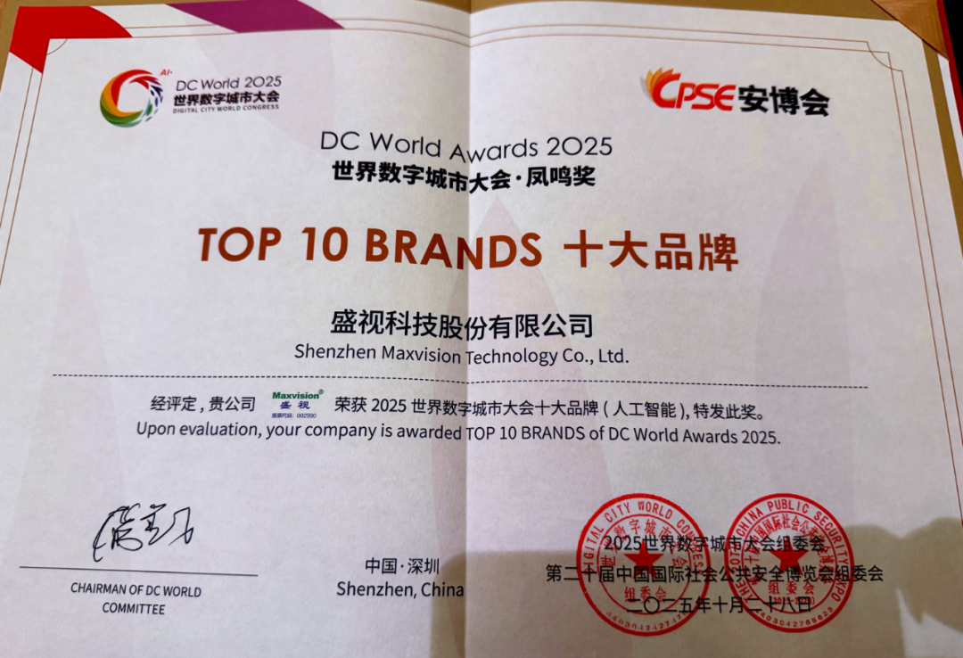 盛视科技凭借在人工智能领域的技术突破与场景落地能力荣获2025CPSE安博会十大品牌奖(人工智能)。
