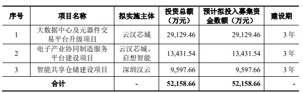 3、云汉芯城(上海)互联网科技股份有限公司(减少募集资金及募投项目数量)