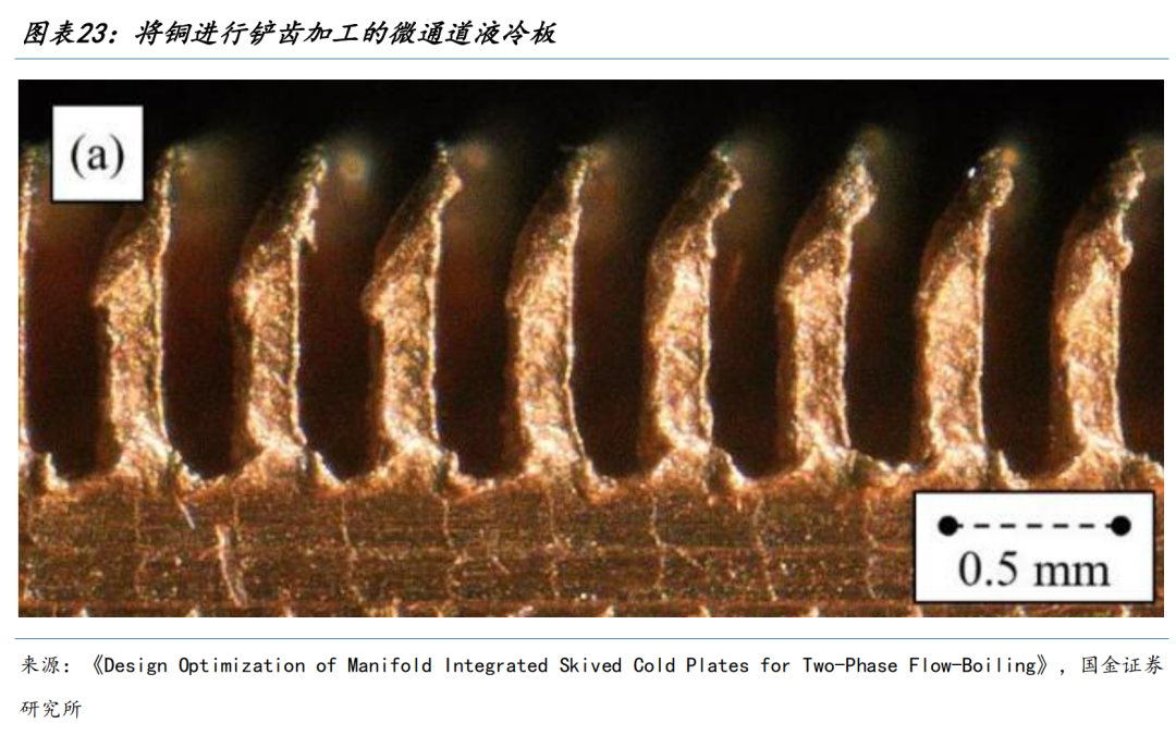 为了尽可能增大散热接触面积,目前产业主要通过铲齿工艺制造微通道液冷板,将铜直接切出小的翅片,一般将当量直径低于1mm的散热器定义为微通道液冷板。