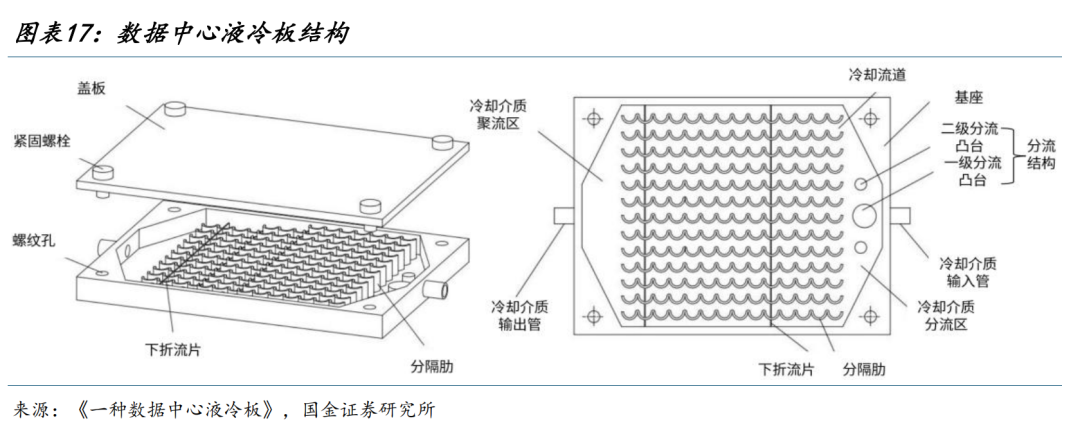 液冷板通过与发热元件接触实现换热,一般由冷板基板、流道盖板、流体通道构成。