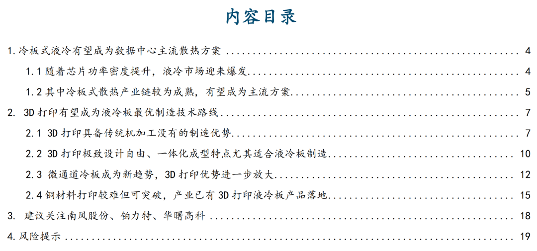 证券研究报告:《洞见先机系列深度一:响应AI芯片散热革命,3D打印液冷板前景广阔》