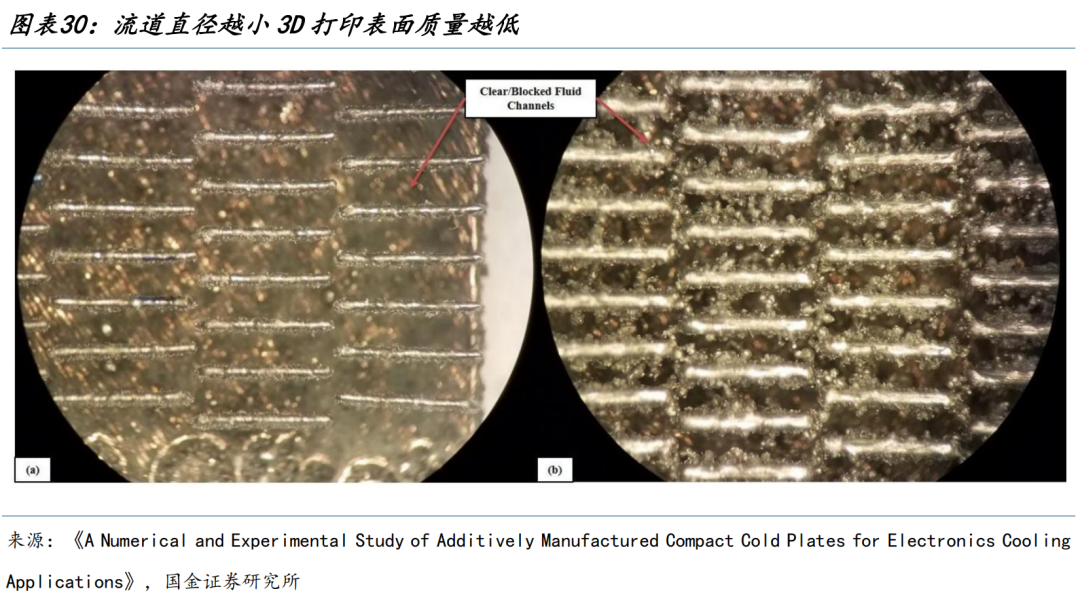 同时微通道散热器由于流道直径极小,3D打印的表面质量控制也是一个难点。