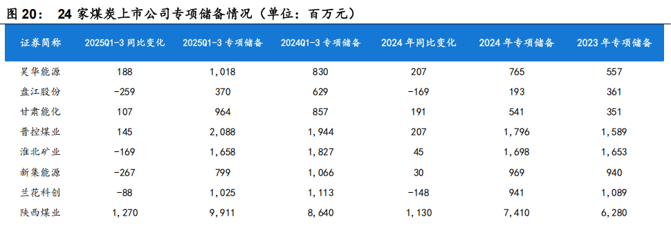 1.4、部分煤企2025年前三季度专项储备减少,一定程度冲抵成本释放业绩