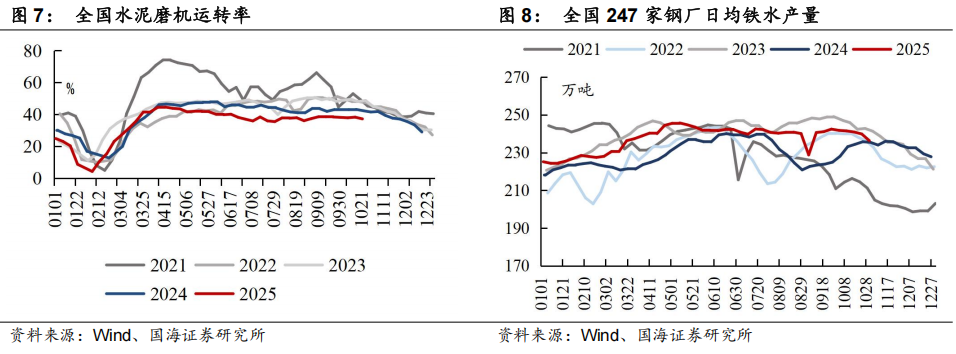 非电需求端:2025年前三季度建材需求同比下降,化工、冶金用煤需求同比增长。冶金端,2025年前三季度焦炭产量实现3.8亿吨,同比+3.50%;建材端,水泥产量实现12.6亿吨,同比-5.20%。化工需求方面,受下游煤化工产能大幅释放驱动,化工用煤需求保持旺盛,根据煤炭市场网样本数据,2025年前三季度化工用煤同比+13%。