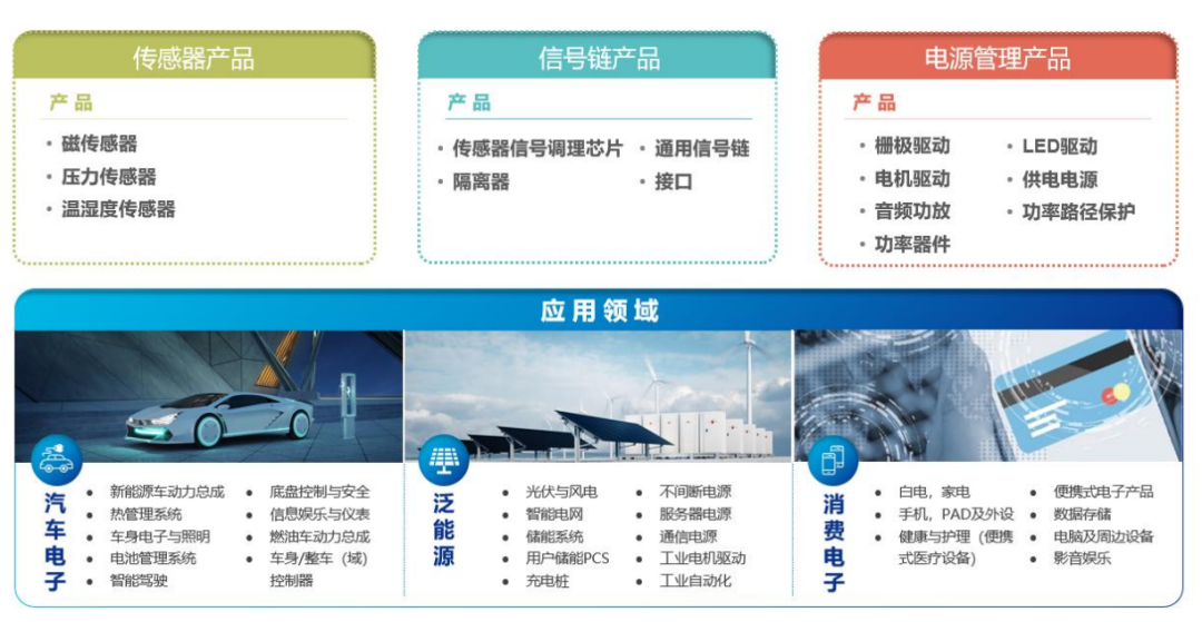 纳芯微电子成立于2013年,是一家高性能高可靠性模拟及混合信号芯片公司,公司专注于传感器、信号链、电源管理等芯片的设计和销售,产品广泛应用于汽车、泛能源及消费电子领域。目前已能提供3,600 余款可供销售的产品型号。