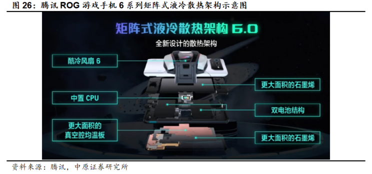 AI手机搭载大模型并带来大量计算需求,散热方案有望迎来升级趋势。智能手机的散热方案随着技术的发展而不断演进,目前在智能手机上已经建立由液冷、VC均热板、硅脂、石墨烯、金属中框等组成的散热体系。随着端侧AI大模型参数量持续增加,以及AI算力的不断提升,AI手机在运行AI应用时产生的热量也将逐步增加,需要更高效的散热解决方案来保证AI手机的性能及稳定性,AI手机散热方案有望迎来升级趋势。三星Galaxy S24 Ultra对散热系统进行了全面升级,其中VC均热板比上代扩大了 1.9 倍,近乎翻倍的散热面积能够更好的控制机身温度,以更稳定的高性能输出为AI应用和游戏运行保驾护航。