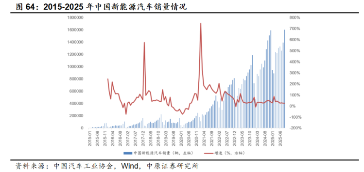 2025年9月中国新能源汽车销量同比增长24.6%。根据中国汽车工业协会统计数据, 2025年9月,中国新能源汽车销量160.4万辆,同比增长24.6%,环比增长15%,新能源汽车新车销量达到汽车新车总销量的49.7%。