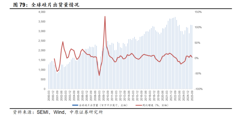 3.7. 全球硅片季度出货量继续同比增长, 预计2026年将持续增长