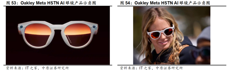Meta与欧克利联合发布新款AI眼镜Oakley Meta HSTN。2025年6月21日,Meta与美国知名运动品牌欧克利(Oakley)联合发布了新款AI眼镜Oakley Meta HSTN,其定位为“高性能AI眼镜(Performance AI Glass)”,主打运动场景。Oakley Meta HSTN 支持POV视频拍摄、Meta AI 助理,常规使用状态下续航时间可达 8 小时,待机续航时间长达 19 小时,并且支持快充;这款眼镜采用最先进的 Oakley PRIZM 镜片,结合 Oakley 的 PRIZM Lens 技术,旨在帮助运动员在不断变化的光线和天气条件下获得更清晰的视野;该产品将于7月11日开始预售,起售价 399 美元(约 2868 元人民币),限量版 499 美元(约 3587 元人民币)。