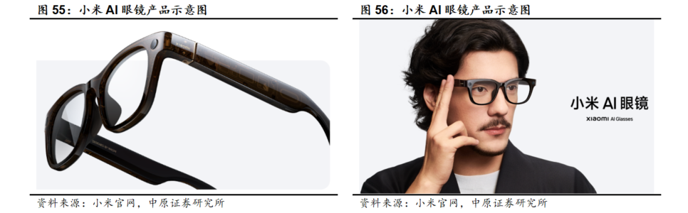 小米发布首款AI眼镜。2025年6月26日,小米首款AI眼镜发布,小米AI眼镜是面向下一代的个人智能设备,售价1999元起,电致变色版本2699元,彩色版本2999元。小米AI眼镜采用经典威灵顿式D型方框设计,12度外翻转轴解决传统智能眼镜夹头痛点,40克裸框重量搭配黑、玳瑁棕、鹦鹉绿三色半透明镜架,支持线下400家门店验光与线上定制处方镜片;1200万像素IMX681传感器实现0.8秒疾速拍摄与2K视频录制;四麦克风阵列结合骨传导技术提升复杂环境收音效果;通过HyperOS系统,眼镜可替代手机摄像头用于微信、QQ视频通话,还与B站、抖音等平台打通直播推流功能;内置小爱同学支持十语种同声传译、卡路里识别等AI应用,可呼唤小爱同学开启第一人称视角拍摄录像。