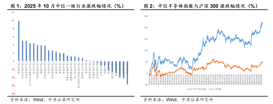10月半导体行业表现相对较弱。2025年10月国内半导体行业(中信)下跌6.18%,同期沪深300持平,其中集成电路下跌6.13%,分立器件下跌2.30%,半导体材料下跌6.61%,半导体设备下跌7.39%;半导体行业(中信)年初至今上涨45.44%。2025年10月费城半导体指数上涨13.48%,同期纳斯达克100上涨4.77%,费城半导体指数年初至今上涨45.16%。