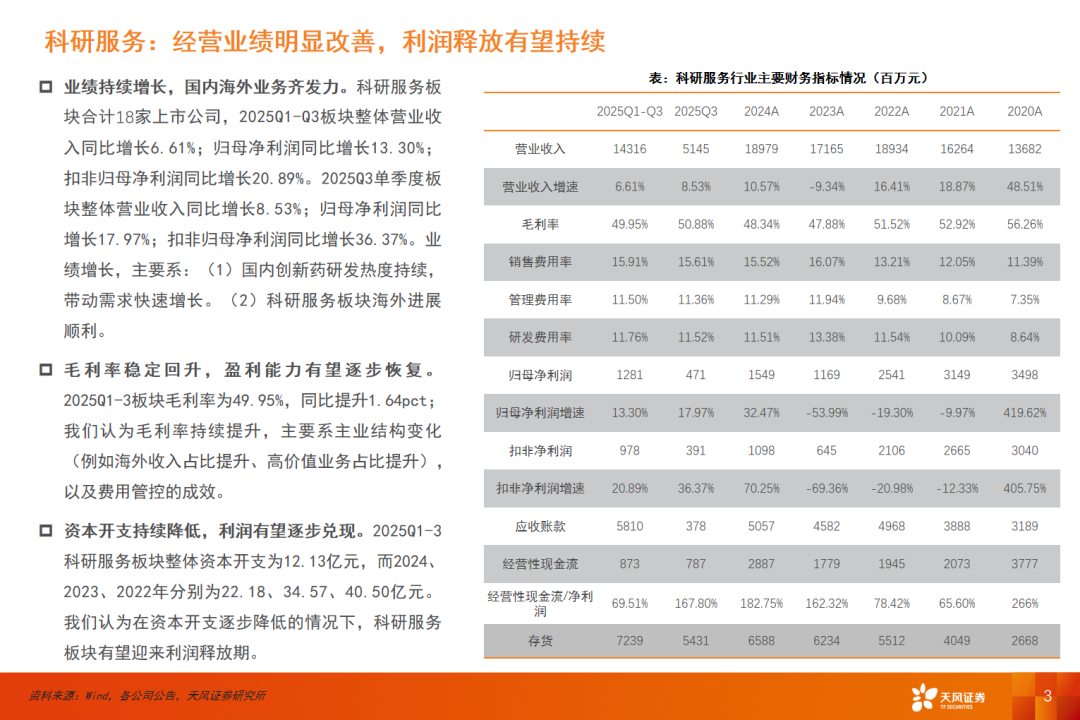证券研究报告:《天风证券-天风医药细分领域分析与展望 (2025Q3):科研服务行业及个股2025年三季度回顾与展望》