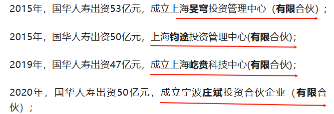 2020年,国华人寿出资50亿元,成立宁波庄斌投资合伙企业(有限合伙);